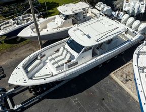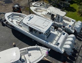 Length45Weight33,500Fuel Capacity683 GALPerson CapacityYacht CertifiedFuel TypeGasolineDriveQuad OutboardBeam13’3”Draft35ADDITIONAL FEATURES * Engine: Twin Yamaha V6 300's with Joystick & Autopilot * Top Options: Dougherty Boat Shade with Carbon Poles... READ MORE