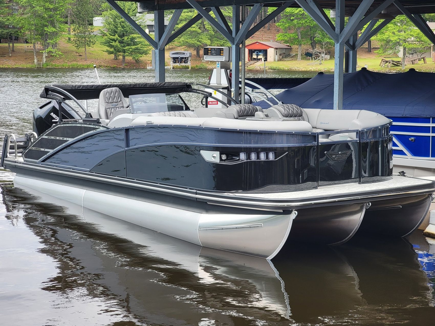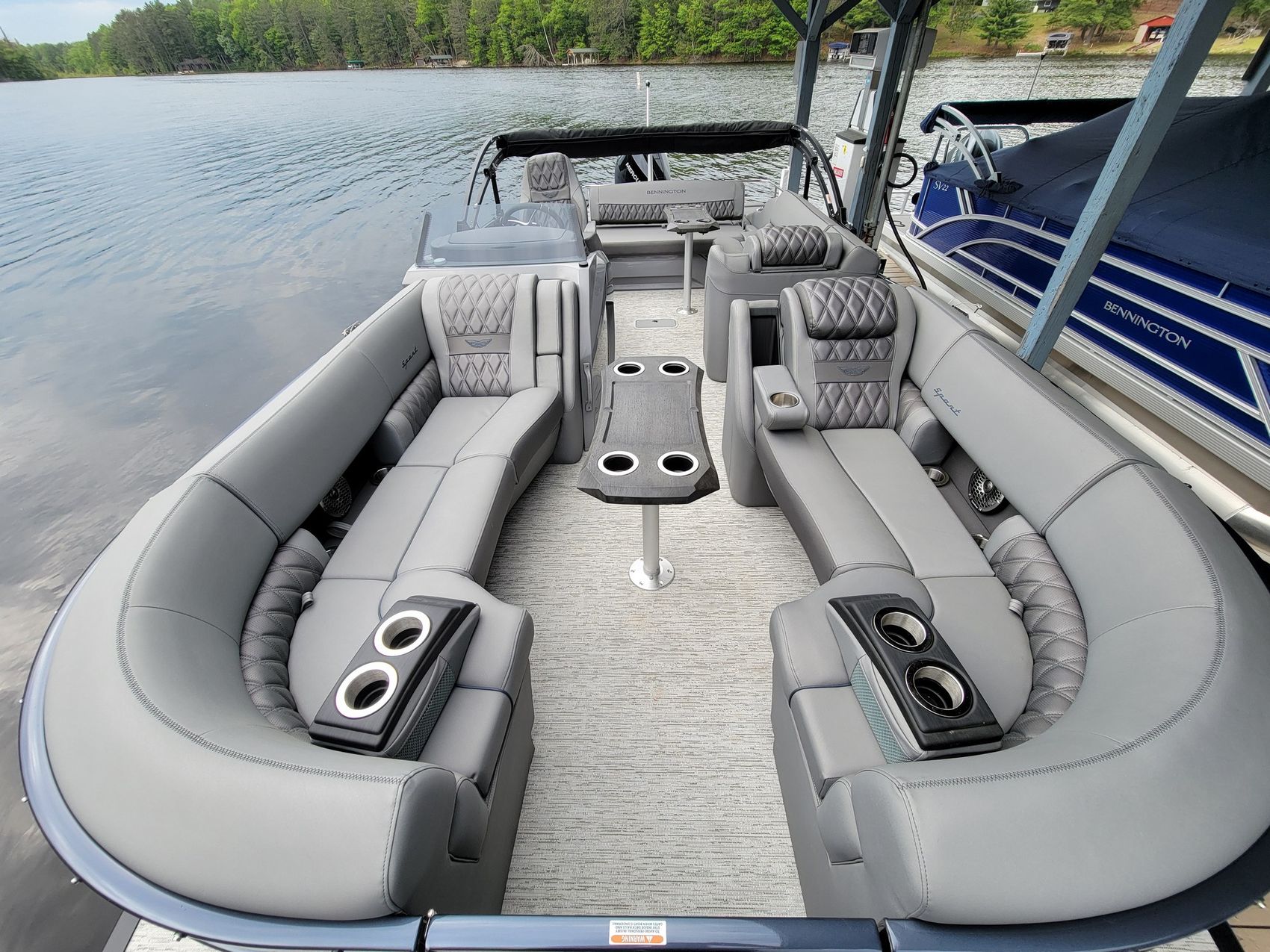 Home » New Boats For Sale » Bennington » 2025 Bennington 23RXSB-ESP (TRI) Prev Boat Next Boat New - 2025 Bennington 23RXSB-ESP (TRI) |Featured IN STOCK Description 2025 Bennington 23 RXSB ESP – Powered by a Mercury 350hp Verado V10, this 23′ tri-toon delivers powerful, confident performance for cruising, entertaining, or watersports. It’s equipped with the ESP Performance Package, ski pylon, and Wavetamer to Bow 3 Tube upgrade for smooth handling and wave-cutting stability. Premium amenities include a Rockford Fosgate M2 sound system with 6.5″ lighted speakers, PMX-1R head unit, Sirius Satellite Radio, and swingback stern speaker/grill upgrade for entertainment on the water. The helm features a 12″ Vivid UX touchscreen, 9″ Simrad multi-function display, and digital switching for total control, alongside Mercury power steering and dual battery setup. Finished in Gemini Black with Ocean Blue accents and Graphite Simtex interior, this 23 RXSB ESP blends luxury, power, and precision craftsmanship for a refined, high-performance experience. Call or visit us today to make it yours!Standard Features7" Digital Screen DisplayPort Gate Glide/Gate StopRecessed Wireless Phone Charger1 Piece Fiberglass Body Integrated with Starboard Bow Chaise LoungeConsole FootrestCustom Wheel with Zebrawood Slate Accents and Etched Center CapFiberglass Door with easy open & close Stainless Steel Hinges & LatchIlluminated Rocker Switches with Dash Mounted Breakers & Master Power SwitchRockford Fostgate PMX - 2 All in One Stereo SystemSimrad Go7 DisplayTilt SteeringElectric Curved Power Bimini TopTapered Bow Deck.250" Thick Bow & Stern Cross Channels18 IN Stern Deck25" PontoonsAluminum Cladded RailsAnodized Raised RailsBlackout PackageCustom Bennington Stainless Steel CleatsDimensional Chrome Logos & BadgeEnhanced LED Docking Lights with Stainless Steel Light HousingsExtended Aft DeckExtruded Splash GuardsFlush Bow DeckFull Height PanelsFull Length Extruded Anodized SkirtingHeavy Duty Rub RailLarge Radius Bow Rails with 24" GateModern Hog Shear Bow Rails and FurnitureMooring Cover Quick ClipsRounded Solid KeelsStainless Steel Cleats and Corner CastingsStainless Steel Deck Bolts (Fanged Elevator Bolts secured with Stainless Steel Nylock Nut.)Stainless Steel Stern Gate and RailsSurlast Mooring CoverSwingback Lighted Stern SpeakerUnderdeck Spray DeflectorsBamboo Vinyl Flooring(NEW) Two-Tone Vinyl Furniture2 Portable Cupholders with Zebrawood Slate Trim and side mesh pocket2 USB Charge Station with Volt Meter; 1 USB with Quick Charge 3.0 & 1 USB-C Port2 Wide Berth Chaise Lounges with Fold-Down Armrest/Cupholder37 Gallon Fuel Tank, 35.2 Gallon Usable CapacityDiamond Stitched Luxury ReclinerDuraframe Seat BasesFire ExtinguisherInterior Light Dimmer (Console Lights Excluded)Mega Pan Fuel SystemPowder Coated Seat HingesPower Distribution Panel with Battery SwitchPure-Comfort Reclining Helm Chair with Integrated HeadrestRGB Lighted Kicker SpeakersSimtex Vinyl UpholsteryStainless Steel and Woodgrain Accents ThroughoutStainless Steel CupholdersStereo RemoteStowable Sculpted Woodgrain Trapezoid TableSwingback PrivacySwingback Stern LoungerWaste ContainerWireless Phone Charger in Starboard Bow Bench Chaise Arm10-Year Bow-to-Stern Warranty*Industry Leading Factory Backed Lifetime Structural and Deck WarrantyAdditional FeaturesMercury 350HP Verado V10 EngineWater Fuel Seperator LargeToekick LightsBlackout LogosElevated HelmRockford Fosgate 6.5" MS Speakers, M2 Subwoofer, PM Punch AmplifierRockford Fosgate PMX-1R Head UnitSirius Satellite RadioStainless Steel Rub RailMercury Power SteeringSwingback Stern Lighted Speaker/Grill UpgradeSculpted Rectangular Bow TableBimini Cable StaysBenny Quick Fender Latch KitSculpted Rectangular Table ExchangeStainless Steel Corvina WheelConsole Storage Pocket with CupholderSki Pylon AluminumGlass WindscreenDual with Switch BatteryWavetamer to Bow 3 Tube UpgradeESP Performance PackageBow Pop Up CleatsAft Pop Up CleatsDeluxe SwingbackStainless Steel Keeper RailIn Floor StorageAnti-Siphon ValveDigital Switching w/ 7" Vivid UX Vessel Control9" Simrad Multi Function Display12" Vivid UX Touchscreen DisplayFull Mooring Cover - Std. COLORS:Panel - Gemini Black Panel Accent -Ocean BlueInterior- Graphite Simtex Pillowtop Diamond Stitched UpholsteryInterior Accent - Perforated Metallic Carbon Interior Embroidery Package - Ocean Blue Canvas -Midnight Black Location:Three Lakes, WI Manufacturer:Bennington Year:2025 Status:IN STOCK Stock #:BEN925390-B1-Stock HIN:ETWS2868L425 length:25 weight:4322 fuel-capacity:37 person-capacity:14 hull-type:Aluminum fuel-type:Gasoline drive:Outboard beam:8' 6" draft:12" Videos Location Three Lakes, WI Contact Info Address: 7453 Hwy X Three Lakes, WI 54562 Phone: (715) 546-3351 Business Hours Mon - Fri 8:00AM - 5:00PM Sat 9:00AM - 5:00PM Sun Closed Payment Calculator Loan Payment Details Price of Inventory Item Min: $0 Max: $5000000 Sales Tax (%) Min: 0% Max: 10% Trade-In Value or Down Payment Min: $0 Max: $5000000 Rate (APR %) Min: 0% Max: 30% Term (Months) Min: 0 Months Max: 288 Months Monthly Payment Summary Price of Inventory Item:$ 162900 Sales Tax (%)7 % Trade In Value or Down Payment$ 0 Rate (APR %)7.25 % Term Months240 Months Estimated Monthly Payment:$ *Financing offered through the Boat House Financial Services and our lending partners. Available rates are dependent on many factors including credit score, down payment, loan term, loan amount, vessel value and vessel age. Minimum credit history and down payment requirements will dictate final approval. Rates are subject to change without notice. Financing is available with approved credit (W.A.C.).The Boat House reserves the right to withdraw any offer of financing. Apply For Financing Boat Inquiry Description Videos Specs Location Payment Calculator Inquire About Boat Description 2025 Bennington 23 RXSB ESP – Powered by a Mercury 350hp Verado V10, this 23′ tri-toon delivers powerful, confident perform
