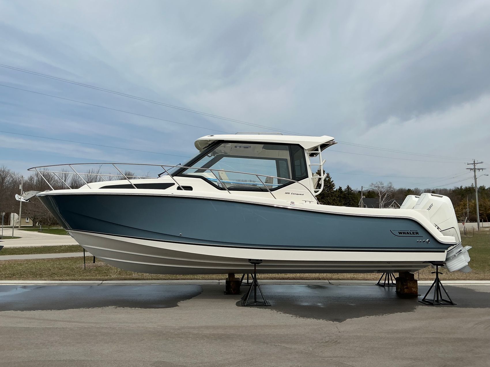 Home » New Boats For Sale » Boston Whaler » 2025 Boston Whaler 325 Conquest Prev Boat Next Boat New - 2025 Boston Whaler 325 Conquest |Featured IN STOCK Description If you’re looking for the perfect boat for exploring all of Door County and all the Great Lakes has to offer, the 325 Conquest might be your perfect boat. Days with long runs offshore, weekend trips across the lake, or just anchoring off Chambers Island, this Conquest can conquer any mission. With a full galley below, or the cockpit prep station it’s perfect for days anchored and hosting friends. If you’re the sporty type, it also has a large live well and two fish boxes in the cockpit flanked by a healthy supply of rod holders. For the members of your crew who enjoy the relaxation of a day out in the sun, the large side decks ensure safe passage onto the expansive bow sun pad. This is a boat that truly has something for everyone.Standard Features325 CONQUEST BASE PACKAGE (325CQT): 300 CXL V8 (DTS) DUAL 4-STROKE MERCURY ENGINES, 300 GALLON INTEGRATED FUEL TANK, STAINLESS STEEL PROPELLER, STEREO SYSTEM - JL Audio MM105-HR stereo with Dash mounted remote volume/mute knob, AM/FM/HD Radio, USB audio, and Sirus XMTM ready, Iphone/Android compatible via integrated Bluetooth 5.0, JL waterproof speakers (6), 10” Subwoofer, and 800W Amplifier. Simrad NSX 12” MFD (GPS, Chart plotter, Fishfinder), Active Imaging 3 in 1 Transom Mount Transducer (CHIRP, SideScan, DownScan) & C-Map® DiscoverTM X Chart Card: North America/Canada. BATTERY TRAYS (4), NAVIGATION LIGHTS, ELECTRIC HORN, AUTOMATIC BILGE PUMPS, FUEL/WATER SRPARATORS, FRESHWATER SYSTEM, SHORE POWER WITH 30 AMP CHARGER & GALVANIC ISOLATOR, LOW PROFILE ANCHOR WINDLASS WITH RODE & ANCHOR, ELECTRIC TRIM TABS WITH INDICATOR, HYDRAULIC TILT STEERING & VESSEL VIEW MOBLE. ENGINES INSTALLED AND TESTED COLOR: HULL SIDE PAINT (ADDS TWO WEEKS TO THE FINISH DATE) (LATE CHANGES WILL NOT BE ACCEPTED)WHITE HULL (STANDARD)WHITE UNDERSIDE OF H/T (STANDARD)WHITE (Standard)Additional FeaturesSTEEL BLUE w/ BLACK GRAPHICSBLACK CANVASPAINTED ENGINE ACCENTS (Dual)DUAL JOYSTICK PILOTING 400 V10 AMS VERADO MERCURY ENGINES (WHITE)STAINLESS STEEL ANCHORBLACK RUB RAIL WITH STAINLESS STEEL INSERTCOCKPIT SUNSHADECRUISING PACKAGE (Dockside hookup for water, electric single burner stove, water heater)AIR CONDITIONING (reverse-cycle)COCKPIT FOLDOUT BENCH SEAT-PORTCOCKPIT TABLE (Teak)COCKPIT REFRIGERATOR STAINLESS STEELUNDERWATER LED LIGHTING12V DC RECEPTACLES AT TRANSOMHARDTOP HATCHESFULL SIDE GLASSWEATHER CURTAIN FOR FULL SIDE GLASSGENERATOR (Low CO gas - 7kw)VHF RADIO w/ AIS16” SIMRAD NSO EVO3S ELECTRONICS/NAVIGATION PACKAGE16” SIMRAD NSO EVO3S ADDITIONAL DISPLAY ELECTRONICS PACKAGETHRU HULL TRANSDUCER (1000W thru hull transducer (SS175 med) and SonarHub™ module)PRIVACY CURTAINBATTERY PKG Location:Sister Bay, WI Manufacturer:Boston Whaler Year:2025 Status:IN STOCK Stock #:BWH2744387-B1-Stock HIN:BWCE0645K425 length:32 weight:4300 fuel-capacity:300 person-capacity:14 hull-type:Fiberglass fuel-type:Gasoline drive:Outboard beam:10'8'' draft:26 Videos Location Door County, WI Contact Info Address: 2587 S. Bay Shore Drive, WI 54234 Phone: (920) 854-4521 Business Hours Mon - Fri 9:00AM - 5:00PM Sat 9:00AM - 3:00PM Sun Closed Service Center Monday – Friday, 9-5 pmSaturdays – 9-Noon Payment Calculator Loan Payment Details Price of Inventory Item Min: $0 Max: $5000000 Sales Tax (%) Min: 0% Max: 10% Trade-In Value or Down Payment Min: $0 Max: $5000000 Rate (APR %) Min: 0% Max: 30% Term (Months) Min: 0 Months Max: 288 Months Monthly Payment Summary Price of Inventory Item:$ 0 Sales Tax (%)7 % Trade In Value or Down Payment$ 0 Rate (APR %)7.25 % Term Months144 Months Estimated Monthly Payment:$ *Financing offered through the Boat House Financial Services and our lending partners. Available rates are dependent on many factors including credit score, down payment, loan term, loan amount, vessel value and vessel age. Minimum credit history and down payment requirements will dictate final approval. Rates are subject to change without notice. Financing is available with approved credit (W.A.C.).The Boat House reserves the right to withdraw any offer of financing. Apply For Financing Boat Inquiry Description Videos Specs Location Payment Calculator Inquire About Boat Description If you’re looking for the perfect boat for exploring all of Door County and all the Great Lakes has to offer, the 325 Conquest might be your perfect boat. Days with long runs offshore, weekend trips across the lake, or just anchoring off Chambers Island, this Conquest can conquer any mission. With a full galley below, or the cockpit prep station it’s perfect for days anchored and hosting friends. If you’re the sporty type, it also has a large live well and two fish boxes in the cockpit flanked by a healthy supply of rod holders. For the members of your crew who enjoy the relaxation of a day out in the sun, the large side decks ensure safe passage onto the expansive bow sun pad. This is a boat that truly has something for everyone.Standard Features325 CONQUEST BASE PACKAGE (325CQT): 300 CXL V8 (DTS) DUAL 4-STROKE MERCURY ENGINES, 300 GALLON INTEGRATED FUEL TANK, STAINLESS STEEL PROPELLER, STEREO SYSTEM - JL Audio MM105-HR stereo with Dash mounted remote volume/mute knob, AM/FM/HD Radio, USB audio, and Sirus XMTM ready, Iphone/Android compatible via integrated Bluetooth 5.0, JL waterproof speakers (6), 10” Subwoofer, and 800W Amplifier. Simrad NSX 12” MFD (GPS, Chart plotter, Fishfinder), Active Imaging 3 in 1 Transom Mount Transducer (CHIRP, SideScan, DownScan) & C-Map® DiscoverTM X Chart Card: North America/Canada. BATTERY TRAYS (4), NAVIGATION LIGHTS, ELECTRIC HORN, AUTOMATIC BILGE PUMPS, FUEL/WATER SRPARATORS, FRESHWATER SYSTEM, SHORE POWER WITH 30 AMP CHARGER & GALVANIC ISOLATOR, LOW PROFILE ANCHOR WINDLASS WITH RODE & ANCHOR, ELECTRIC TRIM TABS WITH INDICATOR, HYDRAULIC TILT STEERING & VESSEL VIEW MOBLE. ENGINES INSTA