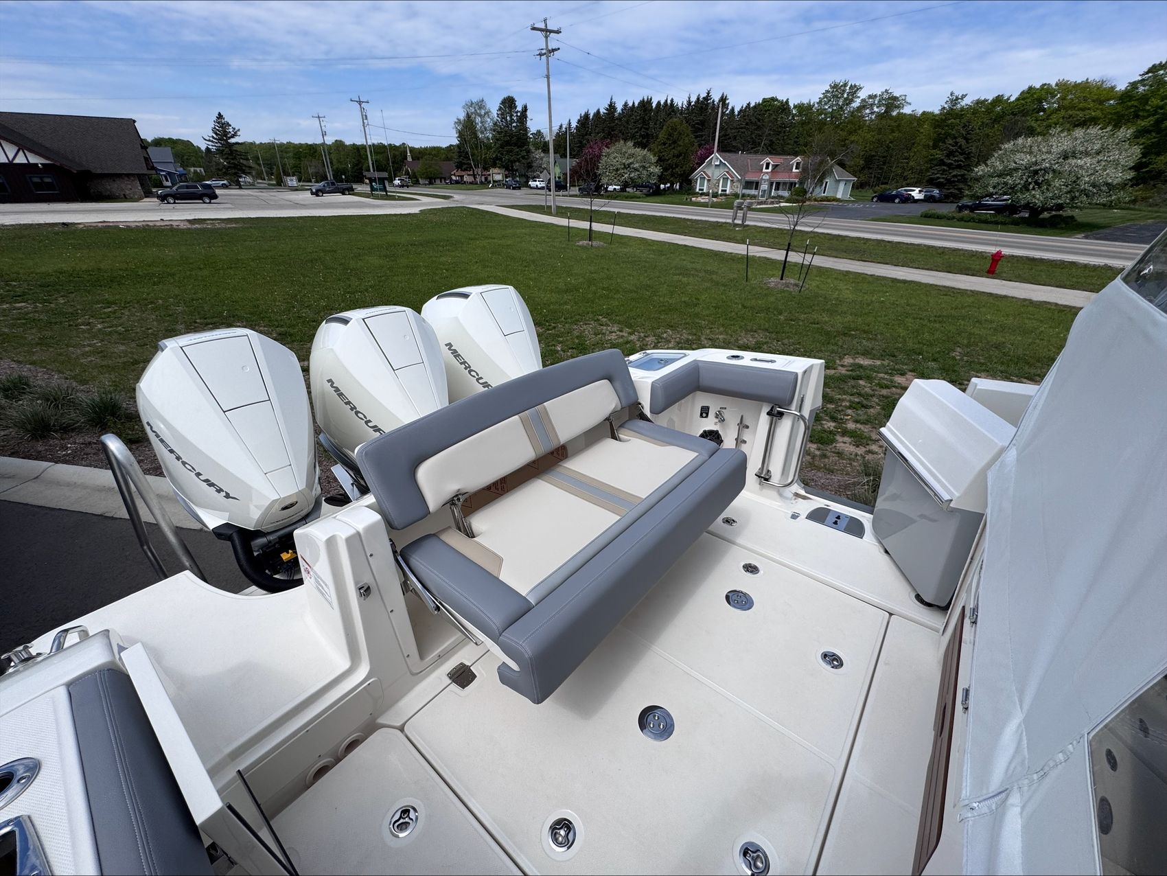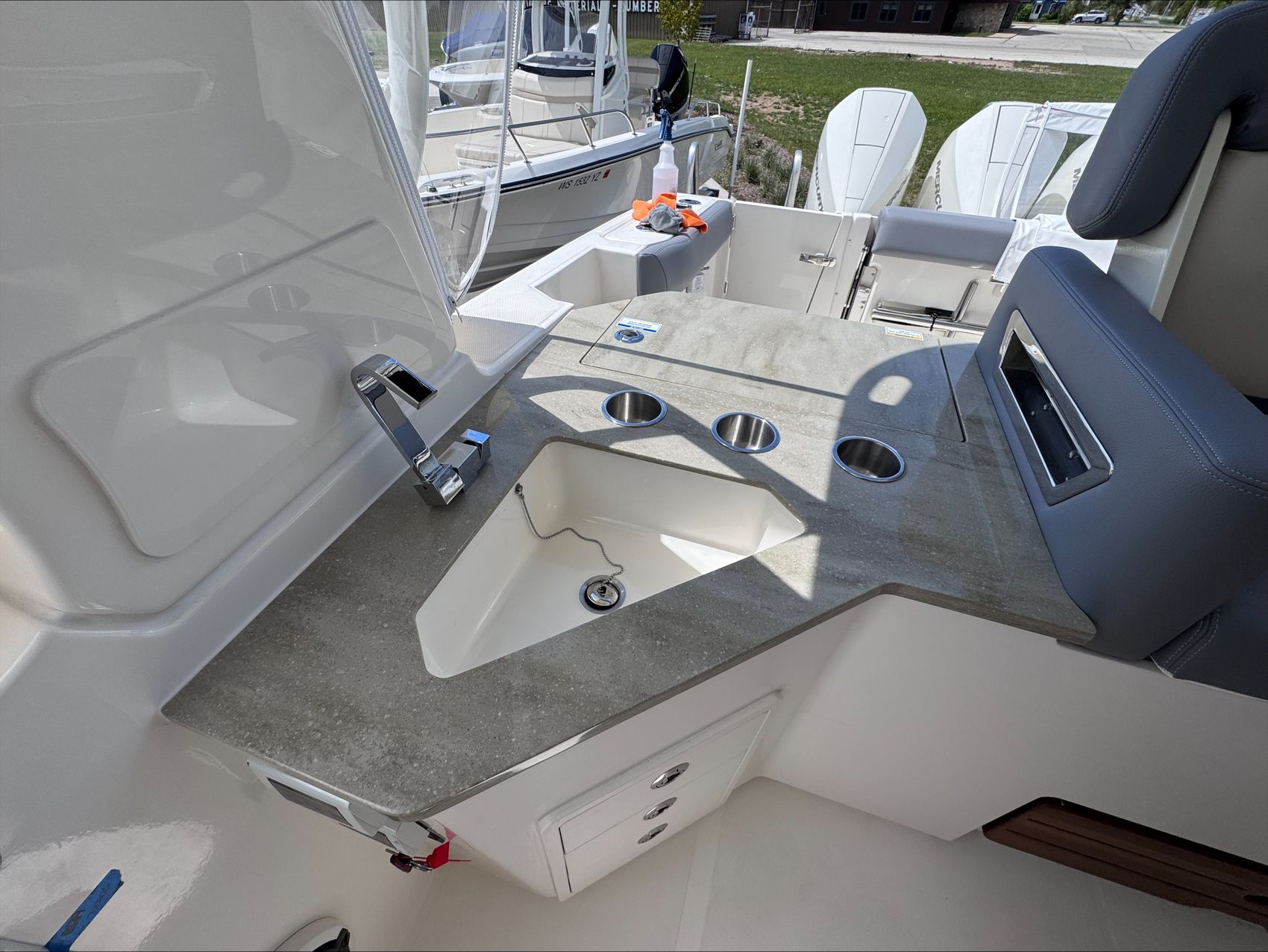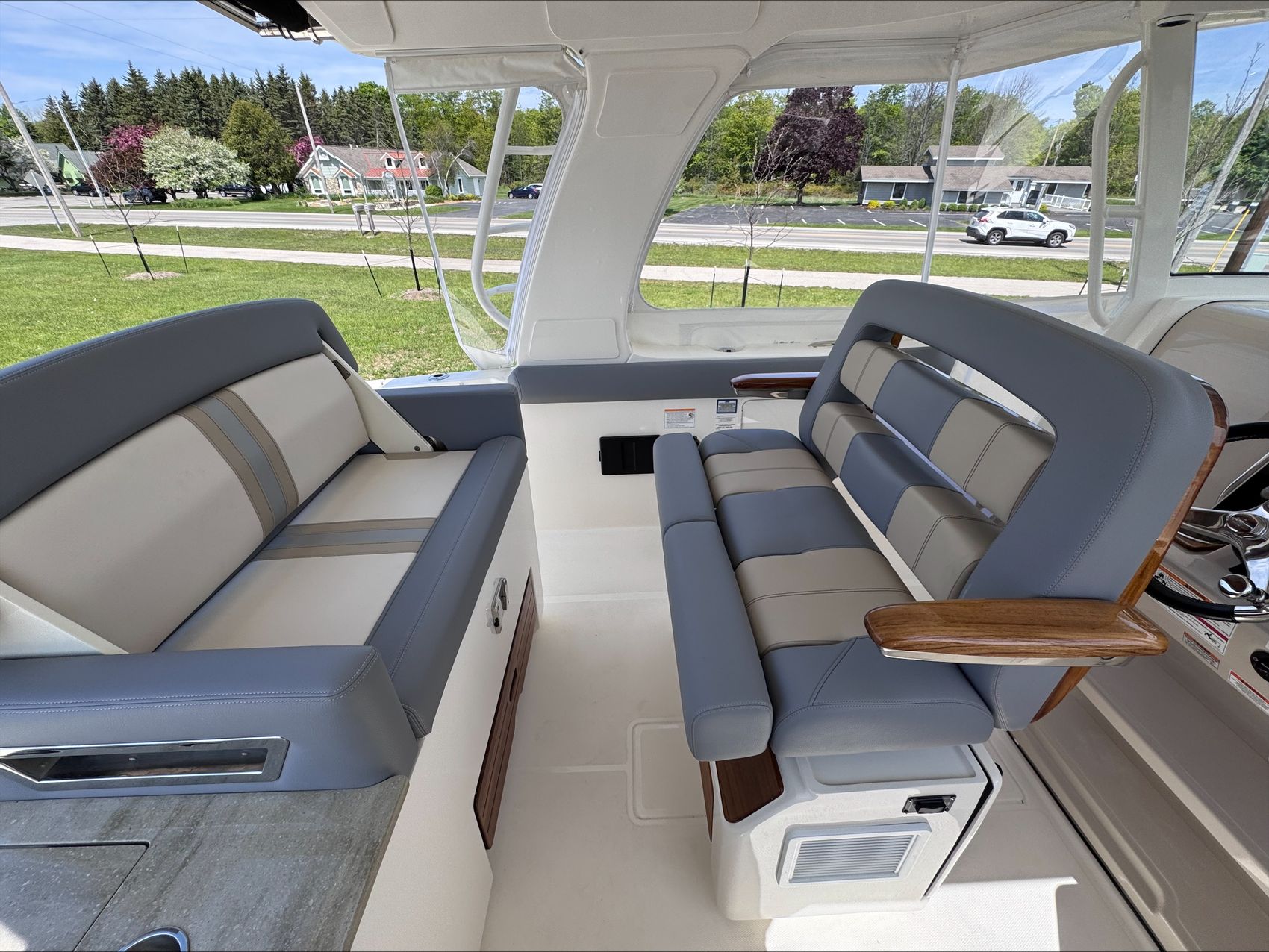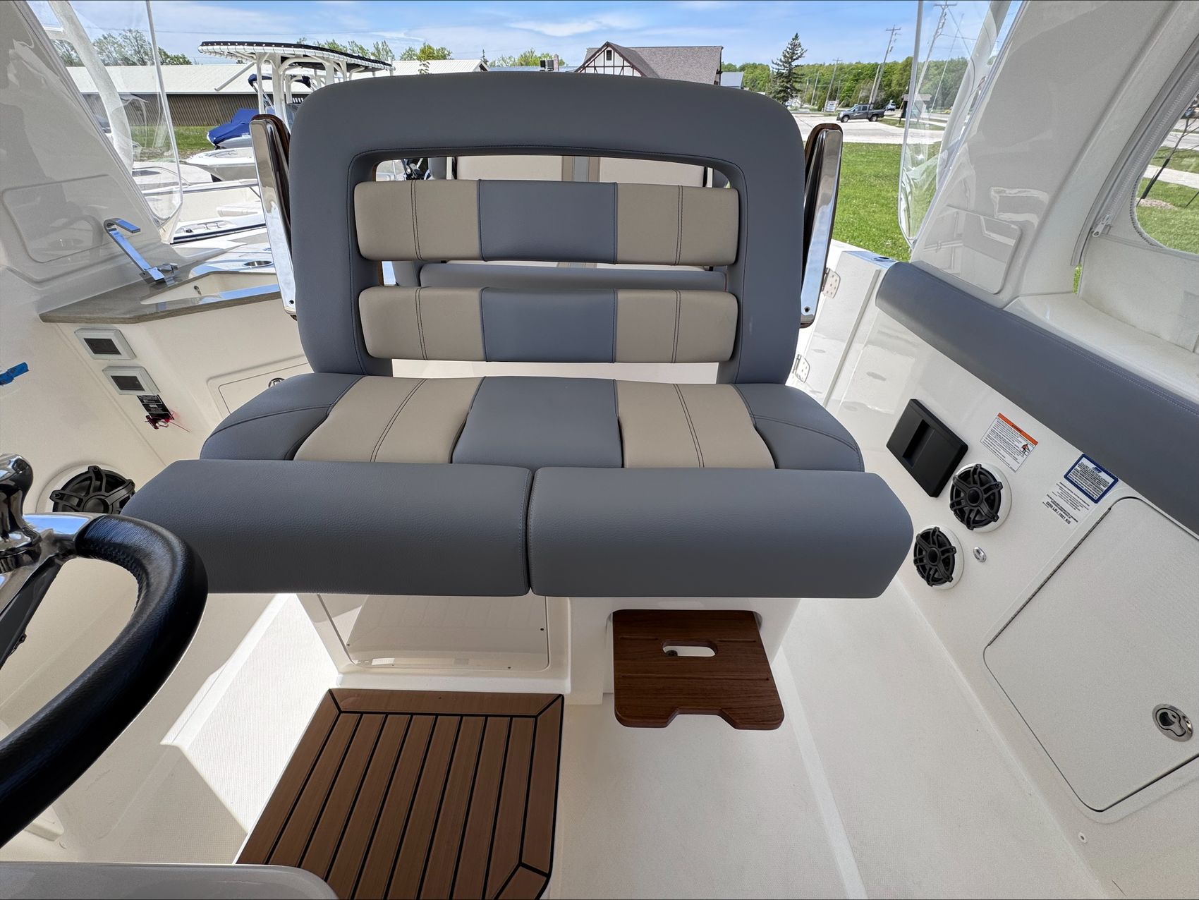 Home » New Boats For Sale » Boston Whaler » 2025 Boston Whaler 350 Realm Prev Boat Next Boat New - 2025 Boston Whaler 350 Realm |Featured IN STOCK Description The Boston Whaler 350 Realm is the culmination of the modern Boston Whaler design. Embracing big water with an aggressively flared bow and ample features which make it perfect for crossing the lake. Another feature that makes this boat well suited for the lake are the weather curtains in addition to heating and air conditioning, ensuring you and your crew stay warm and dry when the weather turns or when the wind picks up after a day at Chambers Island. The full cabin with private head / shower means that two adults can comfortably overnight for a long weekend.Standard Features350 REALM BASE PACKAGE (350RL): JOYSTICK PILOTING 300 V8 (AMS) TRIPLE 4-STROKE MERCURY ENGINES, 385 GALLON INTEGRATED ALUMINUM FUEL TANK, STAINLESS STEEL PROPELLER, BATTERY TRAYS, LED NAVIGATION LIGHTS, ELECTRIC TRUMPET HORN, AUTOMATIC BILGE PUMPS, FUEL/WATER SRPARATORS, 45 GALLON FRESHWATER SYSTEM, CABIN & COCKPIT AIR CONDITIONING, GENERATOR (LOW CO GAS (7.5 Kw) 120v 60 hZ) & HYDRAULIC TILT STEERING. ENGINES INSTALLED AND TESTED DUAL 16” SIMRAD NSO EVO3S ELECTRONICS/NAVIGATION PACKAGE - Dash surface – custom black acrylic integrated with switch panels, Simrad NSO evo3S 16”screens (GPS, Chart Plotter, Fishfinder), Integrated Mercury VesselView Link, Simrad RS40 VHF Radio with AIS and HS40 wireless handset. GS25 GPS Antenna 15 N2K W/Heading Sensor, SIMRAD S5100 1kw Dual channel CHIRP Sounder Module, Airmar 1000 watt recessed thru hull Dual channel CHIRP transducer (B275LH-W), StructureScan 3D transducer included, replaces Active Imaging 3-in-1 transducer. C-Map Discover Chart Card - S. America/Caribbean STEREO SYSTEM - (JL Audio integration into Simrad Navigation Package) HELM - JL Audio MM105-HR stereo with Dash mounted mounted remote volume/mute knob, AM/FM/HD Radio, USB audio, and Sirius XMTM ready, Iphone/Android compatible via integrated Bluetooth 5.0 & JL Audio waterproof speakers (4), 10” Subwoofer (1), and 200W & 1000W Amplifiers, (2). CABIN - Stereo JL Audio MM50 AM/FM, MP3/USB inputs, and Bluetooth compatible source unit., JL Audio speakers 6.5” (2), BOW - JL Audio MM40 stereo remote & JL Audio waterproof speakers 7.7” (2) COLOR: HULL SIDE PAINT (ADDS TWO WEEKS TO THE FINISH DATE) (LATE CHANGES WILL NOT BE ACCEPTED)WHITE HULL (STANDARD)WHITE UNDERSIDE OF H/T (STANDARD)WHITE (Standard)SHORE (Tan) (Standard) – All exterior upholstery (based on option selection), console dash tan gel coatAdditional FeaturesPLATINUM GEL COAT BLACK GRAPHICS (Boot stripe only)BLACK CANVASWHITE FRAMETIDAL (Gray)MERCURY JOYSTICK PILOTING 300 V8 (AMS) 4-STROKE TRIPLESTAINLESS STEEL FENDER HOLDERS (Fender Clips – Stainless steel)TABLES - TEAK - AFT COCKPIT/HELM DECK TABLES (2)TABLE - TEAK - BOW TABLE/SUN LOUNGE ((electrically raised and lowered)SUN SHADE RETRACTABLE (aft cockpit)PREMIUM AUDIO PACKAGEUNDERWATER LED LIGHTING (blue)CANVAS ENCLOSUREENGINE FLUSH SYSTEMRADAR, SIMRAD OPEN ARRAY HALO 48" W/ BIRD+TEAK DETAIL PACKAGE EXTERIORBATTERY PKG - FACTORY INSTALLED TRIPLE (GR31 AGM)REMOTE MAST LIGHT/ANTENNA POWERBASE Location:Sister Bay, WI Manufacturer:Boston Whaler Year:2025 Status:IN STOCK Stock #:BWH2723131-B1-Stock HIN:BWCE0522I425 length:35 hull-type:Fiberglass fuel-type:Gasoline engine-horsepower:900 power:Mercury JOYSTICK PILOTING 300 V8 (AMS) 4-STROKE TRIPLE (WHITE) drive:Outboard Videos Location Door County, WI Contact Info Address: 2587 S. Bay Shore Drive, WI 54234 Phone: (920) 854-4521 Business Hours Mon - Fri 9:00AM - 5:00PM Sat 9:00AM - 3:00PM Sun Closed Service Center Monday – Friday, 9-5 pmSaturdays – 9-Noon Payment Calculator Loan Payment Details Price of Inventory Item Min: $0 Max: $5000000 Sales Tax (%) Min: 0% Max: 10% Trade-In Value or Down Payment Min: $0 Max: $5000000 Rate (APR %) Min: 0% Max: 30% Term (Months) Min: 0 Months Max: 288 Months Monthly Payment Summary Price of Inventory Item:$ 0 Sales Tax (%)7 % Trade In Value or Down Payment$ 0 Rate (APR %)7.25 % Term Months144 Months Estimated Monthly Payment:$ *Financing offered through the Boat House Financial Services and our lending partners. Available rates are dependent on many factors including credit score, down payment, loan term, loan amount, vessel value and vessel age. Minimum credit history and down payment requirements will dictate final approval. Rates are subject to change without notice. Financing is available with approved credit (W.A.C.).The Boat House reserves the right to withdraw any offer of financing. Apply For Financing Boat Inquiry Description Videos Specs Location Payment Calculator Inquire About Boat Description The Boston Whaler 350 Realm is the culmination of the modern Boston Whaler design. Embracing big water with an aggressively flared bow and ample features which make it perfect for crossing the lake. Another feature that makes this boat well suited for the lake are the weather curtains in addition to heating and air conditioning, ensuring you and your crew stay warm and dry when the weather turns or when the wind picks up after a day at Chambers Island. The full cabin with private head / shower means that two adults can comfortably overnight for a long weekend.Standard Features350 REALM BASE PACKAGE (350RL): JOYSTICK PILOTING 300 V8 (AMS) TRIPLE 4-STROKE MERCURY ENGINES, 385 GALLON INTEGRATED ALUMINUM FUEL TANK, STAINLESS STEEL PROPELLER, BATTERY TRAYS, LED NAVIGATION LIGHTS, ELECTRIC TRUMPET HORN, AUTOMATIC BILGE PUMPS, FUEL/WATER SRPARATORS, 45 GALLON FRESHWATER SYSTEM, CABIN & COCKPIT AIR CONDITIONING, GENERATOR (LOW CO GAS (7.5 Kw) 120v 60 hZ) & HYDRAULIC TILT STEERING. ENGINES INSTALLED AND TESTED DUAL 16” SIMRAD NSO EVO3S ELECTRONICS/NAVIGATION PACKAGE - Dash surface – custom black acrylic integrated with switch panels, Simrad NSO evo3S 16”screens (GPS, Chart Plotter, Fishfinder), Integrated Mercury VesselView Link, Simrad RS40 VHF Radio wi
