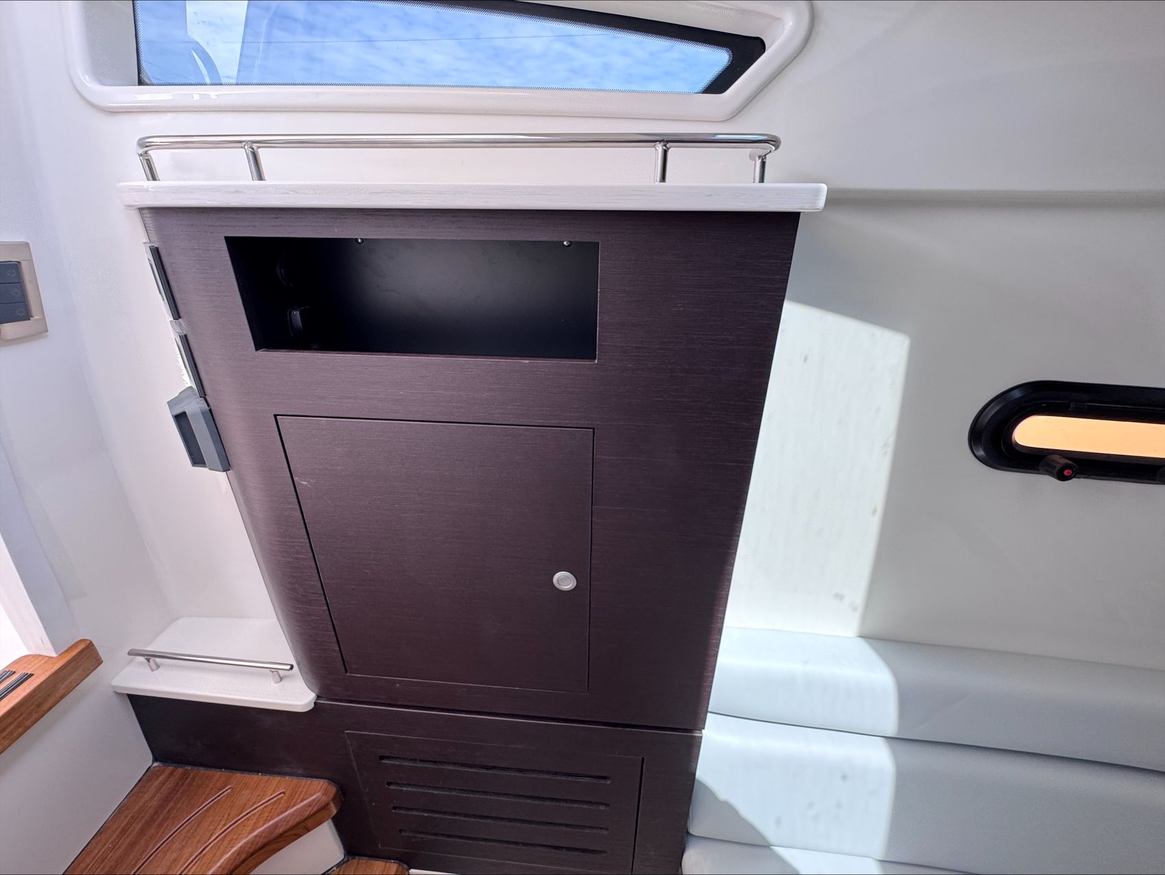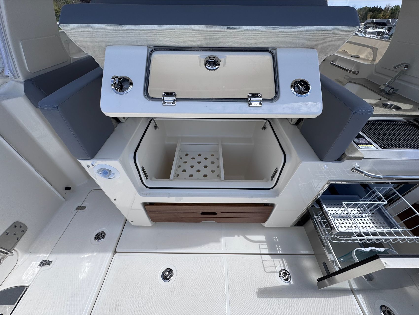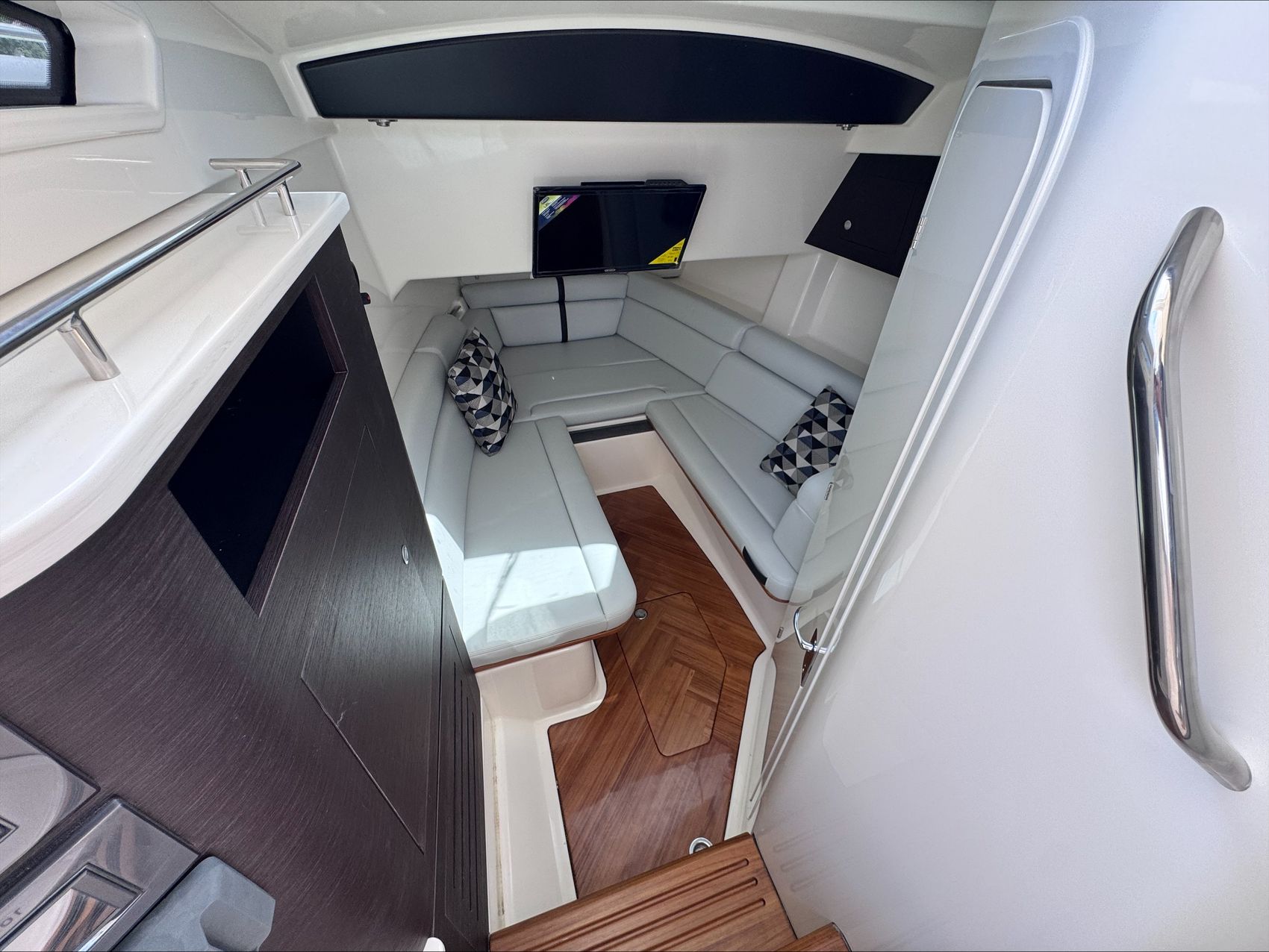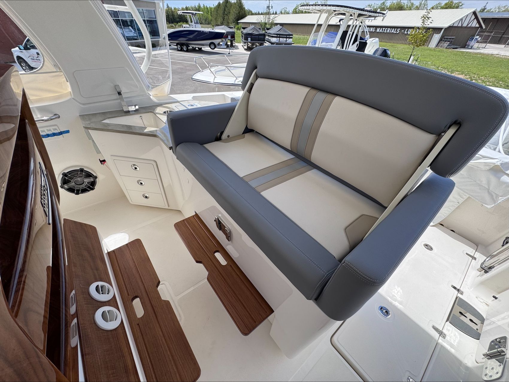 Home » New Boats For Sale » Boston Whaler » 2025 Boston Whaler 350 Realm Prev Boat Next Boat New - 2025 Boston Whaler 350 Realm |Featured IN STOCK Description The Boston Whaler 350 Realm is the culmination of the modern Boston Whaler design. Embracing big water with an aggressively flared bow and ample features which make it perfect for crossing the lake. Another feature that makes this boat well suited for the lake are the weather curtains in addition to heating and air conditioning, ensuring you and your crew stay warm and dry when the weather turns or when the wind picks up after a day at Chambers Island. The full cabin with private head / shower means that two adults can comfortably overnight for a long weekend.Standard Features350 REALM BASE PACKAGE (350RL): JOYSTICK PILOTING 300 V8 (AMS) TRIPLE 4-STROKE MERCURY ENGINES, 385 GALLON INTEGRATED ALUMINUM FUEL TANK, STAINLESS STEEL PROPELLER, BATTERY TRAYS, LED NAVIGATION LIGHTS, ELECTRIC TRUMPET HORN, AUTOMATIC BILGE PUMPS, FUEL/WATER SRPARATORS, 45 GALLON FRESHWATER SYSTEM, CABIN & COCKPIT AIR CONDITIONING, GENERATOR (LOW CO GAS (7.5 Kw) 120v 60 hZ) & HYDRAULIC TILT STEERING. ENGINES INSTALLED AND TESTED DUAL 16” SIMRAD NSO EVO3S ELECTRONICS/NAVIGATION PACKAGE - Dash surface – custom black acrylic integrated with switch panels, Simrad NSO evo3S 16”screens (GPS, Chart Plotter, Fishfinder), Integrated Mercury VesselView Link, Simrad RS40 VHF Radio with AIS and HS40 wireless handset. GS25 GPS Antenna 15 N2K W/Heading Sensor, SIMRAD S5100 1kw Dual channel CHIRP Sounder Module, Airmar 1000 watt recessed thru hull Dual channel CHIRP transducer (B275LH-W), StructureScan 3D transducer included, replaces Active Imaging 3-in-1 transducer. C-Map Discover Chart Card - S. America/Caribbean STEREO SYSTEM - (JL Audio integration into Simrad Navigation Package) HELM - JL Audio MM105-HR stereo with Dash mounted mounted remote volume/mute knob, AM/FM/HD Radio, USB audio, and Sirius XMTM ready, Iphone/Android compatible via integrated Bluetooth 5.0 & JL Audio waterproof speakers (4), 10” Subwoofer (1), and 200W & 1000W Amplifiers, (2). CABIN - Stereo JL Audio MM50 AM/FM, MP3/USB inputs, and Bluetooth compatible source unit., JL Audio speakers 6.5” (2), BOW - JL Audio MM40 stereo remote & JL Audio waterproof speakers 7.7” (2) COLOR: HULL SIDE PAINT (ADDS TWO WEEKS TO THE FINISH DATE) (LATE CHANGES WILL NOT BE ACCEPTED)WHITE HULL (STANDARD)WHITE UNDERSIDE OF H/T (STANDARD)WHITE (Standard)SHORE (Tan) (Standard) – All exterior upholstery (based on option selection), console dash tan gel coatAdditional FeaturesPLATINUM GEL COAT BLACK GRAPHICS (Boot stripe only)BLACK CANVASWHITE FRAMETIDAL (Gray)MERCURY JOYSTICK PILOTING 300 V8 (AMS) 4-STROKE TRIPLESTAINLESS STEEL FENDER HOLDERS (Fender Clips – Stainless steel)TABLES - TEAK - AFT COCKPIT/HELM DECK TABLES (2)TABLE - TEAK - BOW TABLE/SUN LOUNGE ((electrically raised and lowered)SUN SHADE RETRACTABLE (aft cockpit)PREMIUM AUDIO PACKAGEUNDERWATER LED LIGHTING (blue)CANVAS ENCLOSUREENGINE FLUSH SYSTEMRADAR, SIMRAD OPEN ARRAY HALO 48" W/ BIRD+TEAK DETAIL PACKAGE EXTERIORBATTERY PKG - FACTORY INSTALLED TRIPLE (GR31 AGM)REMOTE MAST LIGHT/ANTENNA POWERBASE Location:Sister Bay, WI Manufacturer:Boston Whaler Year:2025 Status:IN STOCK Stock #:BWH2723131-B1-Stock HIN:BWCE0522I425 length:35 hull-type:Fiberglass fuel-type:Gasoline engine-horsepower:900 power:Mercury JOYSTICK PILOTING 300 V8 (AMS) 4-STROKE TRIPLE (WHITE) drive:Outboard Videos Location Door County, WI Contact Info Address: 2587 S. Bay Shore Drive, WI 54234 Phone: (920) 854-4521 Business Hours Mon - Fri 9:00AM - 5:00PM Sat 9:00AM - 3:00PM Sun Closed Service Center Monday – Friday, 9-5 pmSaturdays – 9-Noon Payment Calculator Loan Payment Details Price of Inventory Item Min: $0 Max: $5000000 Sales Tax (%) Min: 0% Max: 10% Trade-In Value or Down Payment Min: $0 Max: $5000000 Rate (APR %) Min: 0% Max: 30% Term (Months) Min: 0 Months Max: 288 Months Monthly Payment Summary Price of Inventory Item:$ 0 Sales Tax (%)7 % Trade In Value or Down Payment$ 0 Rate (APR %)7.25 % Term Months144 Months Estimated Monthly Payment:$ *Financing offered through the Boat House Financial Services and our lending partners. Available rates are dependent on many factors including credit score, down payment, loan term, loan amount, vessel value and vessel age. Minimum credit history and down payment requirements will dictate final approval. Rates are subject to change without notice. Financing is available with approved credit (W.A.C.).The Boat House reserves the right to withdraw any offer of financing. Apply For Financing Boat Inquiry Description Videos Specs Location Payment Calculator Inquire About Boat Description The Boston Whaler 350 Realm is the culmination of the modern Boston Whaler design. Embracing big water with an aggressively flared bow and ample features which make it perfect for crossing the lake. Another feature that makes this boat well suited for the lake are the weather curtains in addition to heating and air conditioning, ensuring you and your crew stay warm and dry when the weather turns or when the wind picks up after a day at Chambers Island. The full cabin with private head / shower means that two adults can comfortably overnight for a long weekend.Standard Features350 REALM BASE PACKAGE (350RL): JOYSTICK PILOTING 300 V8 (AMS) TRIPLE 4-STROKE MERCURY ENGINES, 385 GALLON INTEGRATED ALUMINUM FUEL TANK, STAINLESS STEEL PROPELLER, BATTERY TRAYS, LED NAVIGATION LIGHTS, ELECTRIC TRUMPET HORN, AUTOMATIC BILGE PUMPS, FUEL/WATER SRPARATORS, 45 GALLON FRESHWATER SYSTEM, CABIN & COCKPIT AIR CONDITIONING, GENERATOR (LOW CO GAS (7.5 Kw) 120v 60 hZ) & HYDRAULIC TILT STEERING. ENGINES INSTALLED AND TESTED DUAL 16” SIMRAD NSO EVO3S ELECTRONICS/NAVIGATION PACKAGE - Dash surface – custom black acrylic integrated with switch panels, Simrad NSO evo3S 16”screens (GPS, Chart Plotter, Fishfinder), Integrated Mercury VesselView Link, Simrad RS40 VHF Radio wi