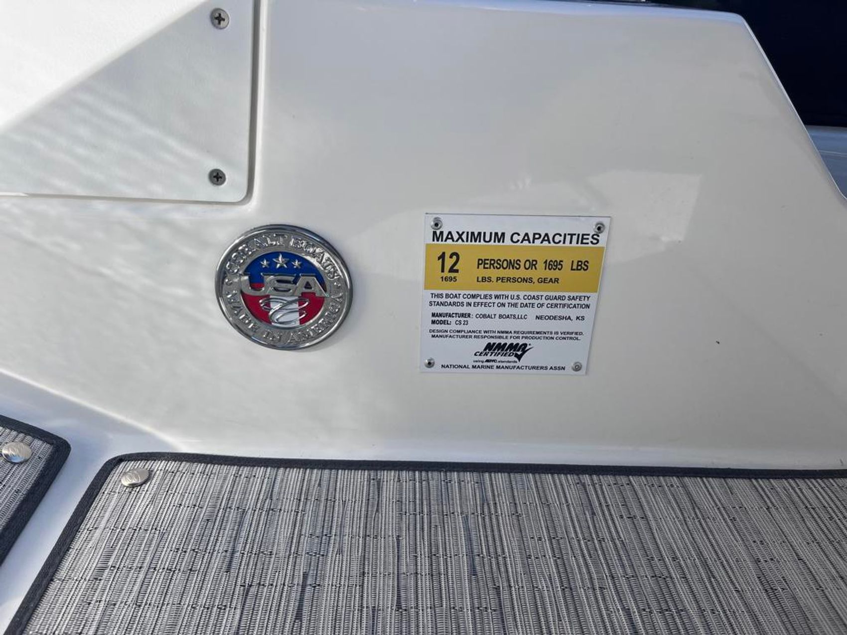 Home » New Boats For Sale » Cobalt » 2024 Cobalt CS23 Prev Boat Next Boat New - 2024 Cobalt CS23 |Featured SALE PENDING Description Standard FeaturesV6-250G SX (non-cat)L Lounge Accessory Power Plug - 12 VoltComposite Helm Eyebrow, Custom StitchingDepth & Water/Air Temp Gauge Pkg.Etched Stainless Steel Instrument PanelHour Meter(s)Leather Steering Wheel w/Auto Leveling HubStainless Steel SwitchesAnchor LockerBow Scuff Plate, Stainless SteelCOBALT Oval Logo, RecessedExtended Running SurfaceGraphics, Molded-In GelcoatMidship CleatsSki Tow Eye, Stainless SteelSS Tubular Platform Perimeter RailStainless Top Trim WindshieldTranshield Shipping CoverAft Facing Rumble SeatAft Sunpad w/Walk-Thru TransomBow Walk-Thru DoorHelm Seat, Flip-UpSeating Varadense ComfortiPod/USB/MP3 PortSound System, Bluetooth, w/6 Spkrs.Stereo Remote, DashStereo Remote, Transom (Prem. Sound)10/5/3 Year Warranty ProtectionBattery Switch, SingleCircuit Breaker Protected Elec SystemComposite FloorComposite Seat BasesComposite TransomFiberglass Cockpit LinerFiberglass Stringer SystemFire Extinguisher(s), ManualIgnition Safety SwitchKevlar Reinforced HullStainless Steel Windshield BracesThrough Prop ExhaustAdditional FeaturesMerCruiser 6.2 L MPI ECT-300 B3 DTSBimini with bootSeaGrass Floor CoveringFender Clips w/Line (4)Flagpole w/FlagFlip-Down Swim Step w/o LadderSof-Trac Mat, Swim PlatformTransom Tilt SwitchBow Center Cushion InsertThrow Pillows, Weighted (4)Premium Sound SystemStereo Remote, TransomBattery Maintainer/Charger, 110vBattery Switch, Dual w/ACR Wireless Phone Charger w/ HolderCanvas Bow/Cockpit Tonneau Covers - NavyHull side - Bayside BlueHull Bottom - WhiteInterior - Frost/SlateNon-Skid - Slate Location:Three Lakes, WI Manufacturer:Cobalt Year:2024 Status:SALE PENDING Stock #:COB448936-B1-Stock HIN:FGE13423C424 length:23 weight:4862 fuel-capacity:52 gal person-capacity:12 hull-type:Fiberglass/Composite fuel-type:Gasoline engine-horsepower:300 power:MerCruiser 6.2 L MPI ECT-300 B3 DTS drive:Inboard/Outboard beam:8' 6'' draft:Up: 24" / Down: 37" Videos Location Three Lakes, WI Contact Info Address: 7453 Hwy X Three Lakes, WI 54562 Phone: (715) 546-3351 Business Hours Mon - Fri 8:00AM - 5:00PM Sat 9:00AM - 5:00PM Sun Closed Payment Calculator Loan Payment Details Price of Inventory Item Min: $0 Max: $5000000 Sales Tax (%) Min: 0% Max: 10% Trade-In Value or Down Payment Min: $0 Max: $5000000 Rate (APR %) Min: 0% Max: 30% Term (Months) Min: 0 Months Max: 288 Months Monthly Payment Summary Price of Inventory Item:$ 0 Sales Tax (%)7 % Trade In Value or Down Payment$ 0 Rate (APR %)7.25 % Term Months144 Months Estimated Monthly Payment:$ *Financing offered through the Boat House Financial Services and our lending partners. Available rates are dependent on many factors including credit score, down payment, loan term, loan amount, vessel value and vessel age. Minimum credit history and down payment requirements will dictate final approval. Rates are subject to change without notice. Financing is available with approved credit (W.A.C.).The Boat House reserves the right to withdraw any offer of financing. Apply For Financing Boat Inquiry Description Videos Specs Location Payment Calculator Inquire About Boat Description Standard FeaturesV6-250G SX (non-cat)L Lounge Accessory Power Plug - 12 VoltComposite Helm Eyebrow, Custom StitchingDepth & Water/Air Temp Gauge Pkg.Etched Stainless Steel Instrument PanelHour Meter(s)Leather Steering Wheel w/Auto Leveling HubStainless Steel SwitchesAnchor LockerBow Scuff Plate, Stainless SteelCOBALT Oval Logo, RecessedExtended Running SurfaceGraphics, Molded-In GelcoatMidship CleatsSki Tow Eye, Stainless SteelSS Tubular Platform Perimeter RailStainless Top Trim WindshieldTranshield Shipping CoverAft Facing Rumble SeatAft Sunpad w/Walk-Thru TransomBow Walk-Thru DoorHelm Seat, Flip-UpSeating Varadense ComfortiPod/USB/MP3 PortSound System, Bluetooth, w/6 Spkrs.Stereo Remote, DashStereo Remote, Transom (Prem. Sound)10/5/3 Year Warranty ProtectionBattery Switch, SingleCircuit Breaker Protected Elec SystemComposite FloorComposite Seat BasesComposite TransomFiberglass Cockpit LinerFiberglass Stringer SystemFire Extinguisher(s), ManualIgnition Safety SwitchKevlar Reinforced HullStainless Steel Windshield BracesThrough Prop ExhaustAdditional FeaturesMerCruiser 6.2 L MPI ECT-300 B3 DTSBimini with bootSeaGrass Floor CoveringFender Clips w/Line (4)Flagpole w/FlagFlip-Down Swim Step w/o LadderSof-Trac Mat, Swim PlatformTransom Tilt SwitchBow Center Cushion InsertThrow Pillows, Weighted (4)Premium Sound SystemStereo Remote, TransomBattery Maintainer/Charger, 110vBattery Switch, Dual w/ACR Wireless Phone Charger w/ HolderCanvas Bow/Cockpit Tonneau Covers - NavyHull side - Bayside BlueHull Bottom - WhiteInterior - Frost/SlateNon-Skid - Slate Location:Three Lakes, WI Manufacturer:Cobalt Year:2024 Status:SALE PENDING Stock #:COB448936-B1-Stock length:23 weight:4862 fuel-capacity:52 gal person-capacity:12 hull-type:Fiberglass/Composite fuel-type:Gasoline engine-horsepower:300 power:MerCruiser 6.2 L MPI ECT-300 B3 DTS drive:Inboard/Outboard beam:8' 6'' draft:Up: 24" / Down: 37" Location Three Lakes, WI Payment Calculator Loan Payment Details Price of Inventory Item Min: $0 Max: $5000000 Sales Tax (%) Min: 0% Max: 10% Trade-In Value or Down Payment Min: $0 Max: $5000000 Rate (APR %) Min: 0% Max: 30% Term (Months) Min: 0 Months Max: 288 Months Monthly Payment Summary Price of Inventory Item:$ 0 Sales Tax (%)7 % Trade In Value or Down Payment$ 0 Rate (APR %)7.25 % Term Months144 Months Estimated Monthly Payment:$ *Financing offered through the Boat House Financial Services and our lending partners. Available rates are dependent on many factors including credit score, down payment, loan term, loan amount, vessel value and vessel age. Minimum credit history and down payment requirements will dictate final approval. Rates are subject to change without notice. Financing is available with approved credit (W.A.C.)