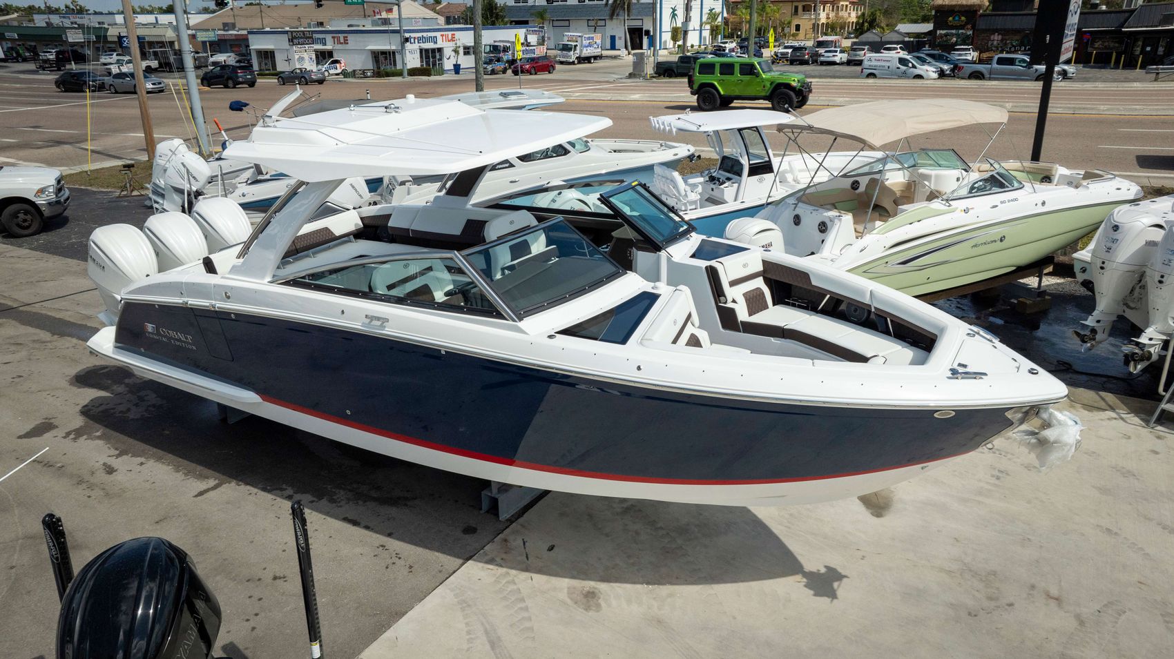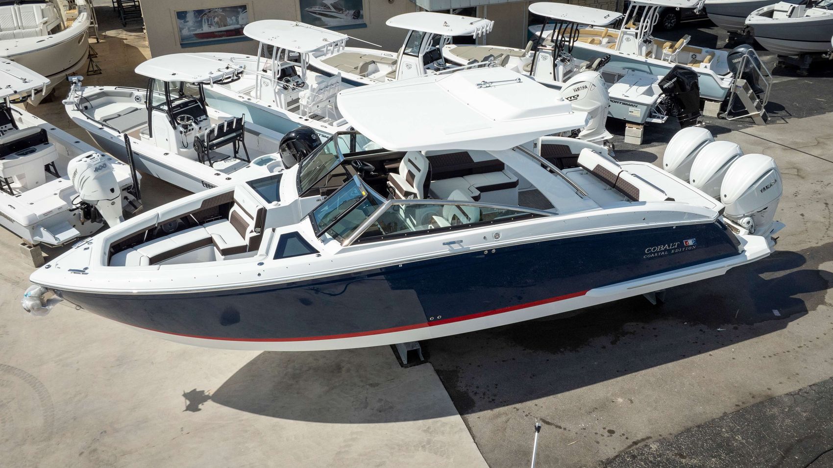 Home » New Boats For Sale » Cobalt » 2025 FMBS Cobalt R33 Prev Boat Next Boat New - 2025 FMBS Cobalt R33 |Featured IN STOCK Description The 2025 Cobalt R33 Outboard redefines what it means to cruise in style and power. With its sleek design and advanced features, this model offers an unparalleled boating experience. Whether you're seeking exhilarating speed or serene relaxation, the R33 delivers on all fronts. Its spacious layout and premium amenities ensure comfort, while its performance capabilities satisfy the most discerning enthusiasts. Experience the perfect blend of elegance and engineering with the 2025 Cobalt R33 Outboard.Additional FeaturesYAMAHA TRP F300XSB WH,INT,JOY(1.75)300HP 3-COLOR CUSTOM,NAVYACCENT STRIPE,KO REDSWIM PLATFORM EXTENSION,WHITEHULL BOTTOM,WHITESUMMIT/COCOA INTERIORCABIN INTERIOR,TANFLOORING,SEAGRASS(BOW/CPIT)RAW UMBER FLOORING,SEAGRASS(HEAD/CABIN)RAW UMBER COBALT LETTERS,SS,W/FLAG,CHROME,LIGHTED COASTAL EDITIONELECTRIC ADJUSTABLE SEATBLACK LEATHER/SS STEERING WHEEL (STD) GLASS COCKPIT,GARMIN 8612HARMAN KARDON AUDIO W/TRANS SPKRS-H/TOP CALIFORNIA REQUIREMENTS(REQ CAT ENGINE) VACUUFLUSH W/MACERATOR DISCHARGE,10 GAL L LOUNGE SEATING (STD)TV SMART 22",12V (CABIN)WINDLASS,ALL CHAIN W/ANCHORLED INTERIOR ACCENT LIGHTING,R/G/BEPA FUEL TANKTRANSHIELD SHIPPING COVER W/H/TOP(STD) ARCH W/HARD TOP,WHITE,W/WHT ELEC AWNING BOW TONNEAU COVER,CAPT/NAVYCOCKPIT TONNEAU COVER,CAPT/NAVYBOW SHADE SAIL,WHITEVHF RADIO W/ANTENNA,GARMINBOARDING DOOR,COCKPIT FENDER CLIPS W/LINE (6), FLAGPOLE W/FLAG SWIM PLATFORM TRANSOM LIGHTING TRANSOM SHOWER (COLD WATER) UNDERWATER LIGHTING BOW CENTER CUSHION INSERT DINETTE TABLE,WHITE,W/BOW&CPIT RECEPT FOOTREST,HELM(FOLD DOWN) SEAGRASS,FOLD DOWN FOOTREST,RAW UMBER STAINLESS STEEL FOOT TREAD (HELM ONLY) WIRELESS PHONE CHARGERS-2(DASH/MBOX) BATTERY MAINTAINER/CHARGER (110V) TRIM TABS W/INDICATORS,W/AUTOGLIDE ENGINE FLUSH,REVERSO-TRIPLE Location:Cape Coral, FL Manufacturer:Cobalt Year:2025 Status:IN STOCK Stock #:COB456519-B1 HIN:FGE3B006L425 length:33 weight:11193 fuel-capacity:225 person-capacity:Yacht Certified hull-type:Fiberglass/Composite fuel-type:Gasoline drive:Triple Outboard beam:10'6 draft:Up: 22" / Down: 28" Videos Location Cape Coral, FL Contact Info Address: 1516 SE 46th Street Cape Coral, FL 33904 Phone: (239) 549-2628 Business Hours Mon - Fri 8:00AM - 5:00PM Sat 8:00AM - 3:00PM Sun Closed Payment Calculator Loan Payment Details Price of Inventory Item Min: $0 Max: $5000000 Sales Tax (%) Min: 0% Max: 10% Trade-In Value or Down Payment Min: $0 Max: $5000000 Rate (APR %) Min: 0% Max: 30% Term (Months) Min: 0 Months Max: 288 Months Monthly Payment Summary Price of Inventory Item:$ 0 Sales Tax (%)7 % Trade In Value or Down Payment$ 0 Rate (APR %)7.25 % Term Months144 Months Estimated Monthly Payment:$ *Financing offered through the Boat House Financial Services and our lending partners. Available rates are dependent on many factors including credit score, down payment, loan term, loan amount, vessel value and vessel age. Minimum credit history and down payment requirements will dictate final approval. Rates are subject to change without notice. Financing is available with approved credit (W.A.C.).The Boat House reserves the right to withdraw any offer of financing. Apply For Financing Boat Inquiry Description Videos Specs Location Payment Calculator Inquire About Boat Description The 2025 Cobalt R33 Outboard redefines what it means to cruise in style and power. With its sleek design and advanced features, this model offers an unparalleled boating experience. Whether you're seeking exhilarating speed or serene relaxation, the R33 delivers on all fronts. Its spacious layout and premium amenities ensure comfort, while its performance capabilities satisfy the most discerning enthusiasts. Experience the perfect blend of elegance and engineering with the 2025 Cobalt R33 Outboard.Additional FeaturesYAMAHA TRP F300XSB WH,INT,JOY(1.75)300HP 3-COLOR CUSTOM,NAVYACCENT STRIPE,KO REDSWIM PLATFORM EXTENSION,WHITEHULL BOTTOM,WHITESUMMIT/COCOA INTERIORCABIN INTERIOR,TANFLOORING,SEAGRASS(BOW/CPIT)RAW UMBER FLOORING,SEAGRASS(HEAD/CABIN)RAW UMBER COBALT LETTERS,SS,W/FLAG,CHROME,LIGHTED COASTAL EDITIONELECTRIC ADJUSTABLE SEATBLACK LEATHER/SS STEERING WHEEL (STD) GLASS COCKPIT,GARMIN 8612HARMAN KARDON AUDIO W/TRANS SPKRS-H/TOP CALIFORNIA REQUIREMENTS(REQ CAT ENGINE) VACUUFLUSH W/MACERATOR DISCHARGE,10 GAL L LOUNGE SEATING (STD)TV SMART 22",12V (CABIN)WINDLASS,ALL CHAIN W/ANCHORLED INTERIOR ACCENT LIGHTING,R/G/BEPA FUEL TANKTRANSHIELD SHIPPING COVER W/H/TOP(STD) ARCH W/HARD TOP,WHITE,W/WHT ELEC AWNING BOW TONNEAU COVER,CAPT/NAVYCOCKPIT TONNEAU COVER,CAPT/NAVYBOW SHADE SAIL,WHITEVHF RADIO W/ANTENNA,GARMINBOARDING DOOR,COCKPIT FENDER CLIPS W/LINE (6), FLAGPOLE W/FLAG SWIM PLATFORM TRANSOM LIGHTING TRANSOM SHOWER (COLD WATER) UNDERWATER LIGHTING BOW CENTER CUSHION INSERT DINETTE TABLE,WHITE,W/BOW&CPIT RECEPT FOOTREST,HELM(FOLD DOWN) SEAGRASS,FOLD DOWN FOOTREST,RAW UMBER STAINLESS STEEL FOOT TREAD (HELM ONLY) WIRELESS PHONE CHARGERS-2(DASH/MBOX) BATTERY MAINTAINER/CHARGER (110V) TRIM TABS W/INDICATORS,W/AUTOGLIDE ENGINE FLUSH,REVERSO-TRIPLE Location:Cape Coral, FL Manufacturer:Cobalt Year:2025 Status:IN STOCK Stock #:COB456519-B1 length:33 weight:11193 fuel-capacity:225 person-capacity:Yacht Certified hull-type:Fiberglass/Composite fuel-type:Gasoline drive:Triple Outboard beam:10'6 draft:Up: 22" / Down: 28" Location Cape Coral, FL Payment Calculator Loan Payment Details Price of Inventory Item Min: $0 Max: $5000000 Sales Tax (%) Min: 0% Max: 10% Trade-In Value or Down Payment Min: $0 Max: $5000000 Rate (APR %) Min: 0% Max: 30% Term (Months) Min: 0 Months Max: 288 Months Monthly Payment Summary Price of Inventory Item:$ 0 Sales Tax (%)7 % Trade In Value or Down Payment$ 0 Rate (APR %)7.25 % Term Months144 Months Estimated Monthly Payment:$ *Financing offered through the Boat House Financial Services and our lending partners. Available rates are dependent on many f