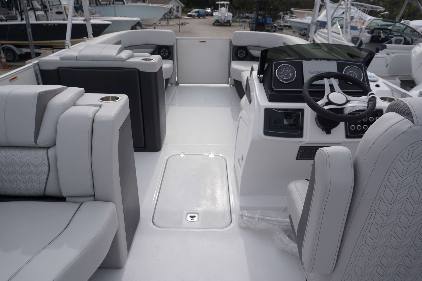 Home » New Boats For Sale » Hurricane » 2024 Hurricane FD 2360 RE3 Prev Boat Next Boat New - 2024 Hurricane FD 2360 RE3 |Featured SPECIAL SAVINGS! Description 2024 Hurricane FunDeck 2360 OB – Pontoon Comfort. Deck Boat Performance. Total Freedom. Say hello to the best of both worlds with the 2024 Hurricane FunDeck 2360 OB – a boat that blends the open layout and comfort of a pontoon with the handling and power of a sport deck boat. Whether you're cruising the lake, pulling tubers, or hosting sunset happy hour on the water, or even going to the Boca Grande sand bar, the FD 2360 is built to deliver unmatched versatility, comfort, and performance.Additional FeaturesCanvas Boat Cover - Shadow Gray Canopy; Silver aluminum double with boot - Shadow Gray Changing Room w/ curtain - Black Construction Engine, install engine HP Higher than 150 (add $300 for Verado) Exterior Bow Ladder, Telescoping Coastal Edition Decal (2) Graphics: Pearl White Rail Bottom Hull Top Band - Shadow Gray Hull - Middle Band - Shadow Gray Hull - Bottom Color - White Hull - Gel Style - Colored Top & Middle Band (Wide) Quick release fender locks (4 Receivers, 2 Rings) Rail Frame Anodized - Silver Rail Skin Color; Insert - Charcoal Smooth Rail Skin Color; Pearl White Smooth Furniture Accent Vinyl - Sport Coordinate Gray Base Vinyl - Sport Ice Gray Captain's chair upgrade; deluxe swivel; slider; reclining; fold down arms Table; bow (white) Helm Console Color - White; includes color matched helm door Garmin GPSMAP 7 43xsv Fishfinder/Chartplotter w/ Saltwater SD Card, External Transducer GPS Speedometer Standard Gauges Steering; Hydraulic SeaStar with tilt wheel (required for 150 hp +) Stereo; Fusion System; RA60: Bluetooth/App Ready/AUX and 4 Black Speakers Upgraded Steering Wheel Windscreen; quick release Yamaha Pre-rig Packages Convenience Package; Docking lights (LED), Stainless Steel Rubrail (White), SS Cupholders Preferred Option Group: Boat Cover, Dual Battery Switch, Changing room with curtain, stern wash down Location:Port Charlotte, FL Manufacturer:Hurricane Year:2024 Status:SPECIAL SAVINGS! Stock #:HUR314081-B1 HIN:GDY75641I324 length:23 weight:3350 fuel-capacity:48 person-capacity:15 hull-type:Fiberglass/Composite fuel-type:Gasoline drive:Single Outboard beam:8'6" draft:15 Location Port Charlotte, FL Contact Info Address: 4295 Laura Street Port Charlotte, FL 33980 Phone: (941) 979-5219 Business Hours Mon - Fri 8:00AM - 5:00PM Sat 9:00AM - 3:00PM Sun Closed Payment Calculator Loan Payment Details Price of Inventory Item Min: $0 Max: $5000000 Sales Tax (%) Min: 0% Max: 10% Trade-In Value or Down Payment Min: $0 Max: $5000000 Rate (APR %) Min: 0% Max: 30% Term (Months) Min: 0 Months Max: 288 Months Monthly Payment Summary Price of Inventory Item:$ 0 Sales Tax (%)7 % Trade In Value or Down Payment$ 0 Rate (APR %)7.25 % Term Months144 Months Estimated Monthly Payment:$ *Financing offered through the Boat House Financial Services and our lending partners. Available rates are dependent on many factors including credit score, down payment, loan term, loan amount, vessel value and vessel age. Minimum credit history and down payment requirements will dictate final approval. Rates are subject to change without notice. Financing is available with approved credit (W.A.C.).The Boat House reserves the right to withdraw any offer of financing. Apply For Financing Boat Inquiry Description Specs Location Payment Calculator Inquire About Boat Description 2024 Hurricane FunDeck 2360 OB – Pontoon Comfort. Deck Boat Performance. Total Freedom. Say hello to the best of both worlds with the 2024 Hurricane FunDeck 2360 OB – a boat that blends the open layout and comfort of a pontoon with the handling and power of a sport deck boat. Whether you're cruising the lake, pulling tubers, or hosting sunset happy hour on the water, or even going to the Boca Grande sand bar, the FD 2360 is built to deliver unmatched versatility, comfort, and performance.Additional FeaturesCanvas Boat Cover - Shadow Gray Canopy; Silver aluminum double with boot - Shadow Gray Changing Room w/ curtain - Black Construction Engine, install engine HP Higher than 150 (add $300 for Verado) Exterior Bow Ladder, Telescoping Coastal Edition Decal (2) Graphics: Pearl White Rail Bottom Hull Top Band - Shadow Gray Hull - Middle Band - Shadow Gray Hull - Bottom Color - White Hull - Gel Style - Colored Top & Middle Band (Wide) Quick release fender locks (4 Receivers, 2 Rings) Rail Frame Anodized - Silver Rail Skin Color; Insert - Charcoal Smooth Rail Skin Color; Pearl White Smooth Furniture Accent Vinyl - Sport Coordinate Gray Base Vinyl - Sport Ice Gray Captain's chair upgrade; deluxe swivel; slider; reclining; fold down arms Table; bow (white) Helm Console Color - White; includes color matched helm door Garmin GPSMAP 7 43xsv Fishfinder/Chartplotter w/ Saltwater SD Card, External Transducer GPS Speedometer Standard Gauges Steering; Hydraulic SeaStar with tilt wheel (required for 150 hp +) Stereo; Fusion System; RA60: Bluetooth/App Ready/AUX and 4 Black Speakers Upgraded Steering Wheel Windscreen; quick release Yamaha Pre-rig Packages Convenience Package; Docking lights (LED), Stainless Steel Rubrail (White), SS Cupholders Preferred Option Group: Boat Cover, Dual Battery Switch, Changing room with curtain, stern wash down Location:Port Charlotte, FL Manufacturer:Hurricane Year:2024 Status:SPECIAL SAVINGS! Stock #:HUR314081-B1 length:23 weight:3350 fuel-capacity:48 person-capacity:15 hull-type:Fiberglass/Composite fuel-type:Gasoline drive:Single Outboard beam:8'6" draft:15 Location Port Charlotte, FL Payment Calculator Loan Payment Details Price of Inventory Item Min: $0 Max: $5000000 Sales Tax (%) Min: 0% Max: 10% Trade-In Value or Down Payment Min: $0 Max: $5000000 Rate (APR %) Min: 0% Max: 30% Term (Months) Min: 0 Months Max: 288 Months Monthly Payment Summary Price of Inventory Item:$ 0 Sales Tax (%)7 % Trade In Value or Down Payment$ 0 Rate (APR %)7.25 % Term Months
