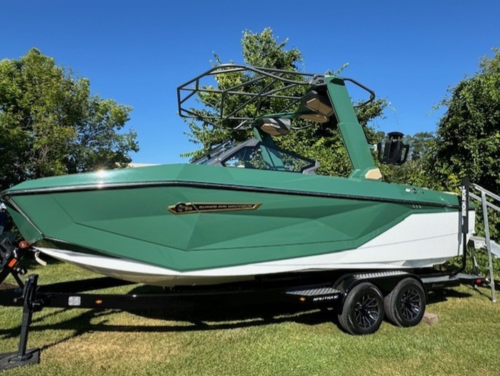 Home » New Boats For Sale » Nautique » 2025 Nautique G23 Prev Boat Next Boat New - 2025 Nautique G23 |Featured SALE PENDING Description Standard FeaturesNautique Configurable Running Surface with Hydro-PlateStereo - JL Audio® M6 Series Elite with DSP (Stereo, 6 Speakers, 10" Subwoofer, 8 Ch. Amplifier)Nautique LINC PANORAY with Helm ControlPower Management Access with Dual AGM BatteriesZero Off GPS Speed ControlLighting - Docking Light Array; LED Courtesy LightsNautique Surf System™ with WAVEPLATE & Surf Pipe ExhaustCleats (4); Removable Cooler; Waste ReceptacleWake Package (Integrated Ballast 2,200 lbs)Sliding Reversible Stern Seat and Flip-Up Lounge Seat (Port), Transom SeatingFlight Control Tower with Nautique Awareness CameraGoProTM Ready Rotating Tow PointFreshwater Engine Flush SystemMyNautiqueTM Connectivity PlatformRotating Wakeboard/Wakesurf RacksWireless Charging, Premium MirrorRotating Wakeboard/Wakesurf RacksZZ6 450HP - 6.2L Direct InjectionAdditional FeaturesDEMOCM ZZ6 450HP - 6.2L Direct InjectionTelescoping Flight Control Tower SystemTower Speakers -JL Audio® M Series Studio EliteBallast - SupplementalIntegrated Dual Battery ChargerTelescoping Tower CoverHeater with DefrosterLadder - Platform AccessEnhanced Courtesy Lighting PackagePhender Pro - Boat Fender SystemBow Armrests (Retractable)Bow Filler CushionHeated Driver's and LoveseatJL Audio M6 Series Studio Elite with WavefrontTransom Mounted Remote ControlSurf Select with The Surf SwitchTandem Spoke Leather Steering WheelWalk-Thru Air-Dam (Pocket Door)COLORS:Primary Interior - Sahara SandInterior Main Stripe - Sahara SandAccent Piping - Teton GreenSeat Boxing - Sahara SandNon-Skid Color - Mocha BrownThread Color - Mojave BrownInterior Chromax - BlackExterior Chromax- GoldInterior Deck - Mystic WhiteExt. Main Stripe - Teton GreenRear Accent - Mystic WhiteForward Accent - Teton GreenMain Accent Stripe - Teton GreenHull Bottom - Mystic WhitePlatform - Mystic WhiteTransom Covers - Mystic White Location:Elkhorn, WI Manufacturer:Nautique Year:2025 Status:SALE PENDING Stock #:NAU334357-B1-DFS HIN:CTC54081F425 length:23 weight:6,000 fuel-capacity:65.6 person-capacity:16 hull-type:Fiberglass/Composite fuel-type:Gasoline engine-horsepower:450 power:PCM ZZ6 450HP - 6.2L Direct Injection drive:Inboard-V beam:102" draft:31" Videos Location Lauderdale Lakes, WI Contact Info Address: N7536 Sterlingworth Dr. Elkhorn, WI 53121 Phone: (262) 742-3898 Business Hours Mon Closed Tue - Sat 8:00AM - 5:00PM Sun 10:00AM - 4:00PM Payment Calculator Loan Payment Details Price of Inventory Item Min: $0 Max: $5000000 Sales Tax (%) Min: 0% Max: 10% Trade-In Value or Down Payment Min: $0 Max: $5000000 Rate (APR %) Min: 0% Max: 30% Term (Months) Min: 0 Months Max: 288 Months Monthly Payment Summary Price of Inventory Item:$ 0 Sales Tax (%)7 % Trade In Value or Down Payment$ 0 Rate (APR %)7.25 % Term Months144 Months Estimated Monthly Payment:$ *Financing offered through the Boat House Financial Services and our lending partners. Available rates are dependent on many factors including credit score, down payment, loan term, loan amount, vessel value and vessel age. Minimum credit history and down payment requirements will dictate final approval. Rates are subject to change without notice. Financing is available with approved credit (W.A.C.).The Boat House reserves the right to withdraw any offer of financing. Apply For Financing Boat Inquiry Description Videos Specs Location Payment Calculator Inquire About Boat Description Standard FeaturesNautique Configurable Running Surface with Hydro-PlateStereo - JL Audio® M6 Series Elite with DSP (Stereo, 6 Speakers, 10" Subwoofer, 8 Ch. Amplifier)Nautique LINC PANORAY with Helm ControlPower Management Access with Dual AGM BatteriesZero Off GPS Speed ControlLighting - Docking Light Array; LED Courtesy LightsNautique Surf System™ with WAVEPLATE & Surf Pipe ExhaustCleats (4); Removable Cooler; Waste ReceptacleWake Package (Integrated Ballast 2,200 lbs)Sliding Reversible Stern Seat and Flip-Up Lounge Seat (Port), Transom SeatingFlight Control Tower with Nautique Awareness CameraGoProTM Ready Rotating Tow PointFreshwater Engine Flush SystemMyNautiqueTM Connectivity PlatformRotating Wakeboard/Wakesurf RacksWireless Charging, Premium MirrorRotating Wakeboard/Wakesurf RacksZZ6 450HP - 6.2L Direct InjectionAdditional FeaturesDEMOCM ZZ6 450HP - 6.2L Direct InjectionTelescoping Flight Control Tower SystemTower Speakers -JL Audio® M Series Studio EliteBallast - SupplementalIntegrated Dual Battery ChargerTelescoping Tower CoverHeater with DefrosterLadder - Platform AccessEnhanced Courtesy Lighting PackagePhender Pro - Boat Fender SystemBow Armrests (Retractable)Bow Filler CushionHeated Driver's and LoveseatJL Audio M6 Series Studio Elite with WavefrontTransom Mounted Remote ControlSurf Select with The Surf SwitchTandem Spoke Leather Steering WheelWalk-Thru Air-Dam (Pocket Door)COLORS:Primary Interior - Sahara SandInterior Main Stripe - Sahara SandAccent Piping - Teton GreenSeat Boxing - Sahara SandNon-Skid Color - Mocha BrownThread Color - Mojave BrownInterior Chromax - BlackExterior Chromax- GoldInterior Deck - Mystic WhiteExt. Main Stripe - Teton GreenRear Accent - Mystic WhiteForward Accent - Teton GreenMain Accent Stripe - Teton GreenHull Bottom - Mystic WhitePlatform - Mystic WhiteTransom Covers - Mystic White Location:Elkhorn, WI Manufacturer:Nautique Year:2025 Status:SALE PENDING Stock #:NAU334357-B1-DFS length:23 weight:6,000 fuel-capacity:65.6 person-capacity:16 hull-type:Fiberglass/Composite fuel-type:Gasoline engine-horsepower:450 power:PCM ZZ6 450HP - 6.2L Direct Injection drive:Inboard-V beam:102" draft:31" Location Elkhorn, WI Payment Calculator Loan Payment Details Price of Inventory Item Min: $0 Max: $5000000 Sales Tax (%) Min: 0% Max: 10% Trade-In Value or Down Payment Min: $0 Max: $5000000 Rate (APR %) Min: 0% Max: 30% Term (Months) Min: 0 Months Max: 288 Months Monthly Payment Summary Price of In