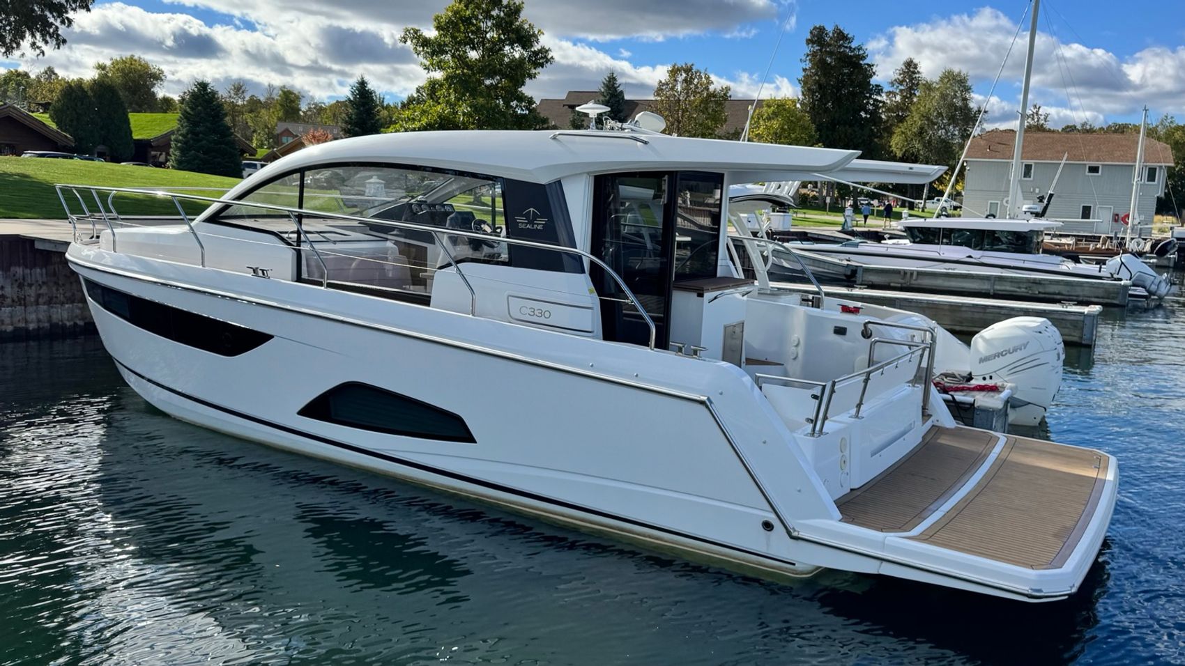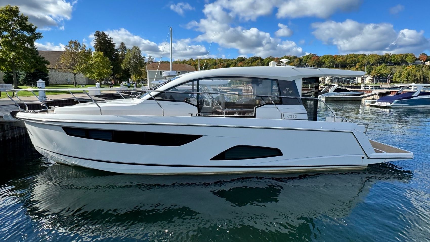 Home » Used Boats For Sale » Sealine » 2016 Sealine C330 Prev Boat Next Boat Used - 2016 Sealine C330 |Featured SALE PENDING Description This 2016 Sealine C330 has been exceptionally well cared for and shows beautifully for its age. With its sleek design and clean, modern lines, it’s clear this vessel has been maintained with pride. While you’ll see the expected light signs of use aboard a 2016 model, the overall condition is genuinely impressive — this is a boat you can step aboard and enjoy immediately, without the worry of deferred maintenance or major updates. Ideal for couples or small families looking to cruise in comfort, the C330 offers the best of both indoor and outdoor living. Whether you're sipping coffee on the aft deck or enjoying a quiet evening in the well-appointed salon, this boat is built for relaxed, extended weekends on the water. The hardtop and sliding windows provide a perfect balance of sun and shade, making it just as enjoyable dockside as it is underway. Located at The Boat House Door County, this Sealine is right at home among the marinas and scenic shoreline of Sturgeon Bay. If you're ready to elevate your Great Lakes cruising game, this C330 is ready to show. Reach out today to schedule a private tour.Additional FeaturesTwo double-bed cabins: one forward (owner’s cabin) and one aft (guest)One head / bathroomSaloon with open-plan layout: galley, seating and the cockpit flow together when the passage is openedFull height panoramic windows in the saloon and large hull windows in the cabins, for natural light and viewsDeck & Cockpit: Teak (or “Flexiteak”) decking in cockpit/side-decks in many listingsLarge bathing platform integrated at stern, with swim ladder and shower (hot/cold) in many specsElectronics: Chartplotter/navigation system, autopilot, radar Comfort features: Heating/ventilation systemDoors/windows opening the saloon to the cockpit (bi-fold doors) to enhance indoor/outdoor living Location:Sister Bay, WI Manufacturer:Sealine Year:2016 Status:SALE PENDING Stock #:SEAC330-B1-Stock HIN:SILAC041C616 length:33 weight:14700 fuel-capacity:150 hull-type:Fiberglass/Composite fuel-type:Gasoline drive:Single Outboard beam:11'6 draft:2'11 Location Door County, WI Contact Info Address: 2587 S. Bay Shore Drive, WI 54234 Phone: (920) 854-4521 Business Hours Mon - Fri 9:00AM - 5:00PM Sat 9:00AM - 3:00PM Sun Closed Service Center Monday – Friday, 9-5 pmSaturdays – 9-Noon Payment Calculator Loan Payment Details Price of Inventory Item Min: $0 Max: $5000000 Sales Tax (%) Min: 0% Max: 10% Trade-In Value or Down Payment Min: $0 Max: $5000000 Rate (APR %) Min: 0% Max: 30% Term (Months) Min: 0 Months Max: 288 Months Monthly Payment Summary Price of Inventory Item:$ 214999 Sales Tax (%)7 % Trade In Value or Down Payment$ 0 Rate (APR %)7.25 % Term Months240 Months Estimated Monthly Payment:$ *Financing offered through the Boat House Financial Services and our lending partners. Available rates are dependent on many factors including credit score, down payment, loan term, loan amount, vessel value and vessel age. Minimum credit history and down payment requirements will dictate final approval. Rates are subject to change without notice. Financing is available with approved credit (W.A.C.).The Boat House reserves the right to withdraw any offer of financing. Apply For Financing Boat Inquiry Description Specs Location Payment Calculator Inquire About Boat Description This 2016 Sealine C330 has been exceptionally well cared for and shows beautifully for its age. With its sleek design and clean, modern lines, it’s clear this vessel has been maintained with pride. While you’ll see the expected light signs of use aboard a 2016 model, the overall condition is genuinely impressive — this is a boat you can step aboard and enjoy immediately, without the worry of deferred maintenance or major updates. Ideal for couples or small families looking to cruise in comfort, the C330 offers the best of both indoor and outdoor living. Whether you're sipping coffee on the aft deck or enjoying a quiet evening in the well-appointed salon, this boat is built for relaxed, extended weekends on the water. The hardtop and sliding windows provide a perfect balance of sun and shade, making it just as enjoyable dockside as it is underway. Located at The Boat House Door County, this Sealine is right at home among the marinas and scenic shoreline of Sturgeon Bay. If you're ready to elevate your Great Lakes cruising game, this C330 is ready to show. Reach out today to schedule a private tour.Additional FeaturesTwo double-bed cabins: one forward (owner’s cabin) and one aft (guest)One head / bathroomSaloon with open-plan layout: galley, seating and the cockpit flow together when the passage is openedFull height panoramic windows in the saloon and large hull windows in the cabins, for natural light and viewsDeck & Cockpit: Teak (or “Flexiteak”) decking in cockpit/side-decks in many listingsLarge bathing platform integrated at stern, with swim ladder and shower (hot/cold) in many specsElectronics: Chartplotter/navigation system, autopilot, radar Comfort features: Heating/ventilation systemDoors/windows opening the saloon to the cockpit (bi-fold doors) to enhance indoor/outdoor living Location:Sister Bay, WI Manufacturer:Sealine Year:2016 Status:SALE PENDING Stock #:SEAC330-B1-Stock length:33 weight:14700 fuel-capacity:150 hull-type:Fiberglass/Composite fuel-type:Gasoline drive:Single Outboard beam:11'6 draft:2'11 Location Sister Bay, WI Payment Calculator Loan Payment Details Price of Inventory Item Min: $0 Max: $5000000 Sales Tax (%) Min: 0% Max: 10% Trade-In Value or Down Payment Min: $0 Max: $5000000 Rate (APR %) Min: 0% Max: 30% Term (Months) Min: 0 Months Max: 288 Months Monthly Payment Summary Price of Inventory Item:$ 214999 Sales Tax (%)7 % Trade In Value or Down Payment$ 0 Rate (APR %)7.25 % Term Months240 Months Estimated Monthly Payment:$ *Financing offered through the Boa